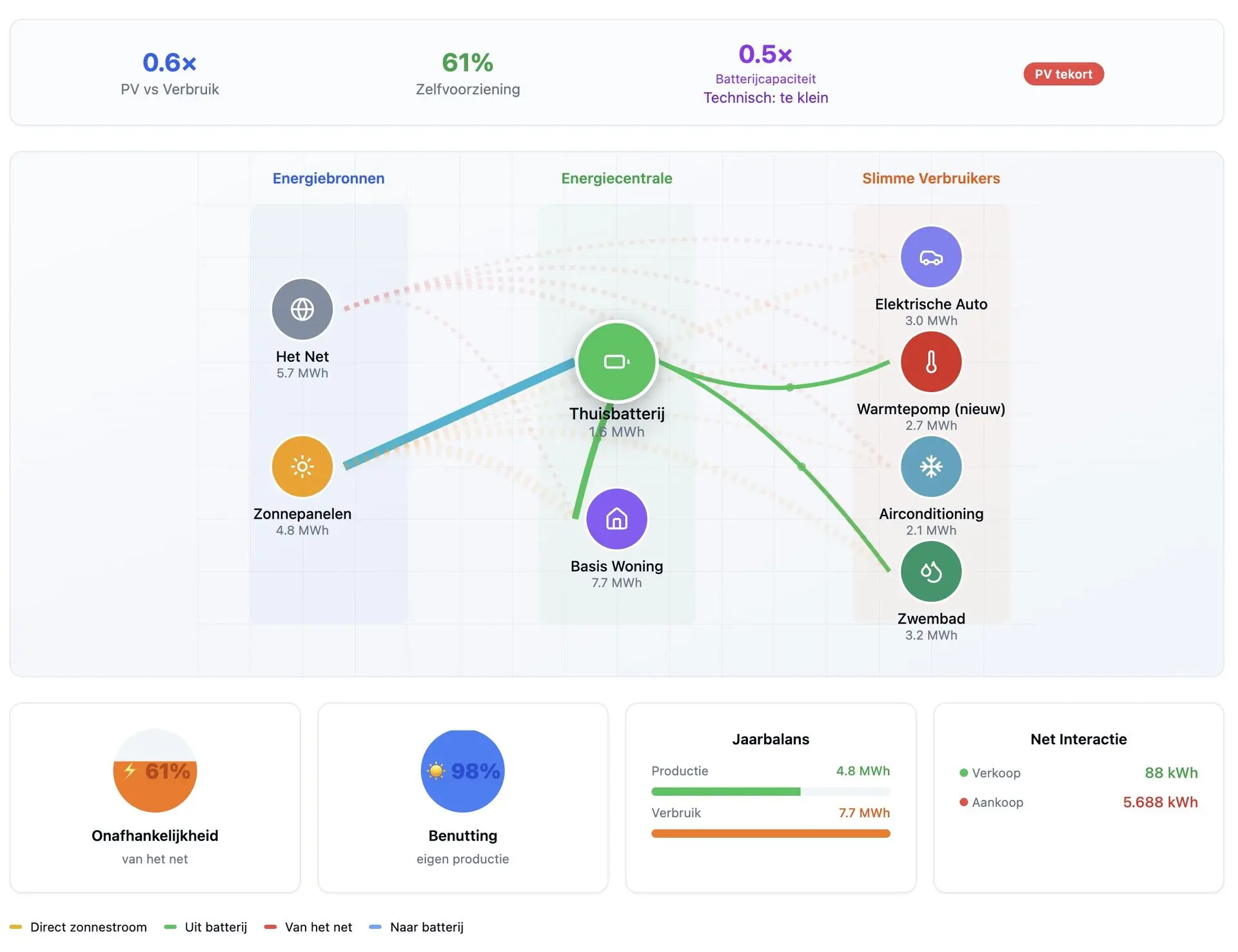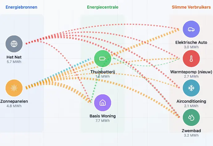Laat zonnepanelen, batterij, laadpaal, warmtepomp en andere verbruikers samenwerken in één systeem.